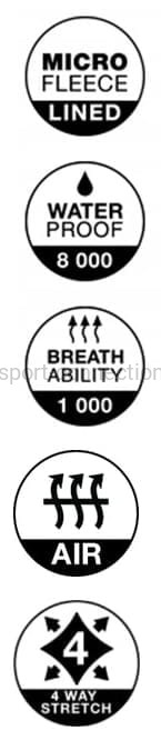 - waterproof - wodoodporność 8 000 mm H2O - wskaźnik określający wodoszczelność - prezentowany jest w milimetrach słupa wody, przed którą chroni materiał