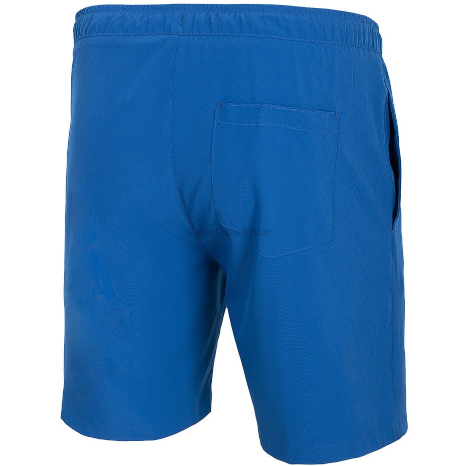 Szorty plażowe męskie 4F posiadają kieszenie, w których schowasz mały portfel lub inne przedmioty. Podwójna regulacja w pasie w postaci sznurka i gumy optymalnie zabezpieczają spodenki przed zsuwaniem się podczas skoków lub wychodzenia z wody.